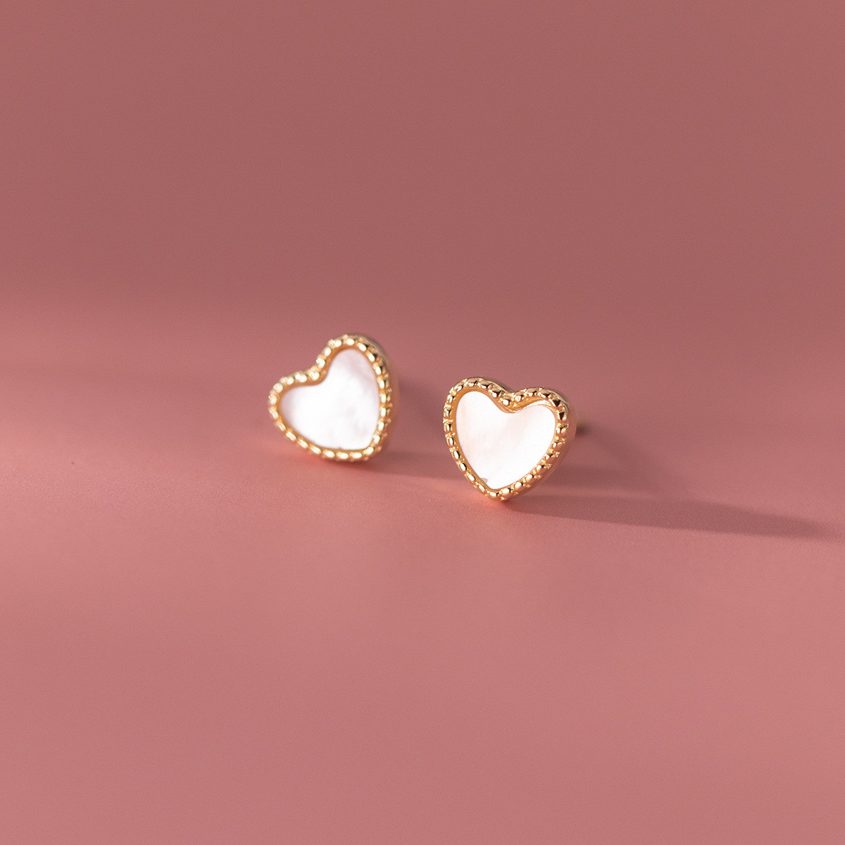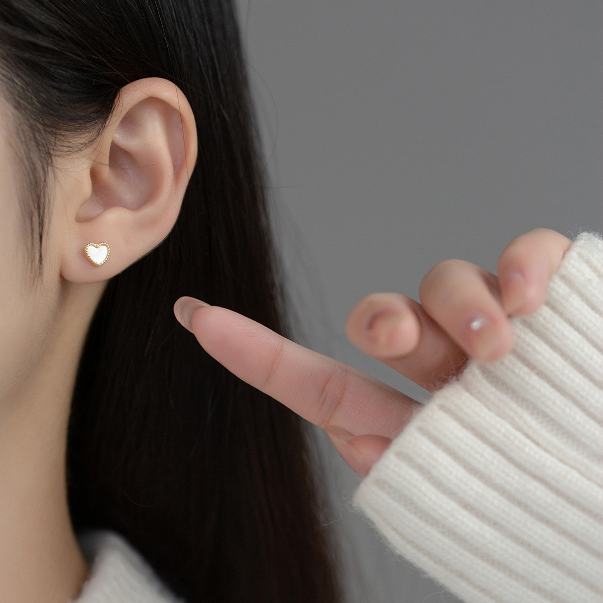 s925 silver stud trendy simple cute colorful heart sweet earrings