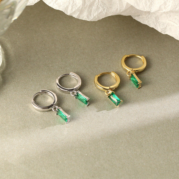 925 sterling silver vintage square colorful cubiczirconia earrings