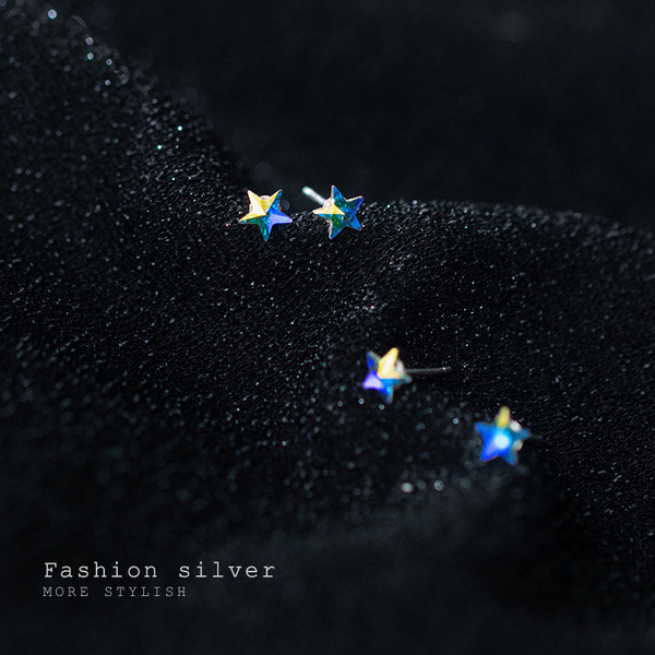 s925 sterling silver colorful trendy square rhinestone earrings