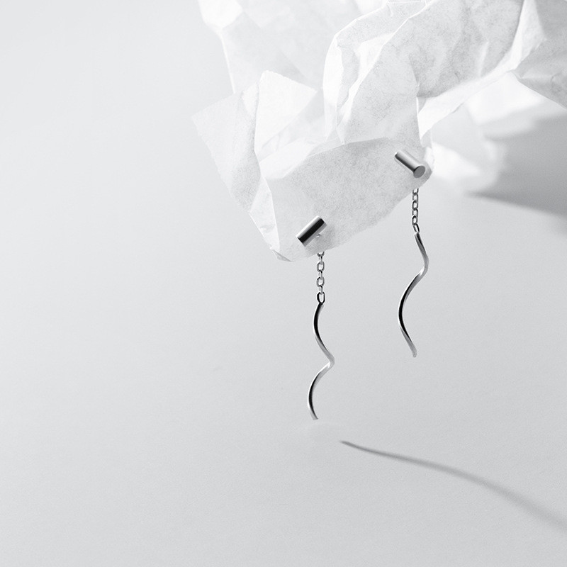 s925 sterling silver simple long pearl string chic earrings