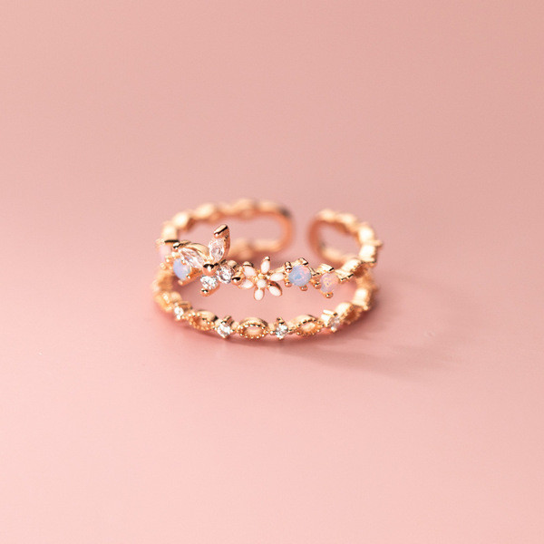 s925 sterling silver double doublelayer layered adjustable ring ring