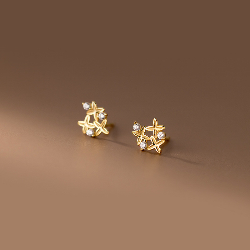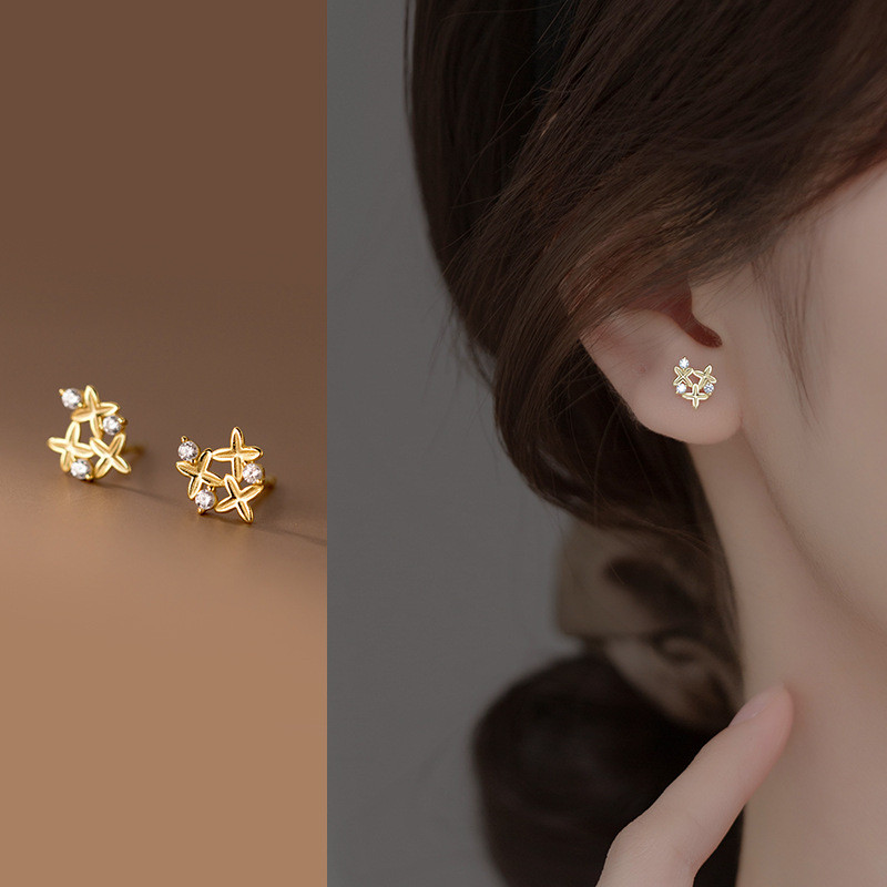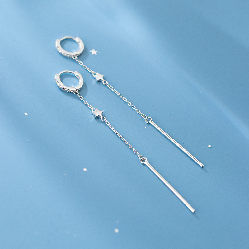 s925 sterling silver stars rhinestone asymmetric chic earrings