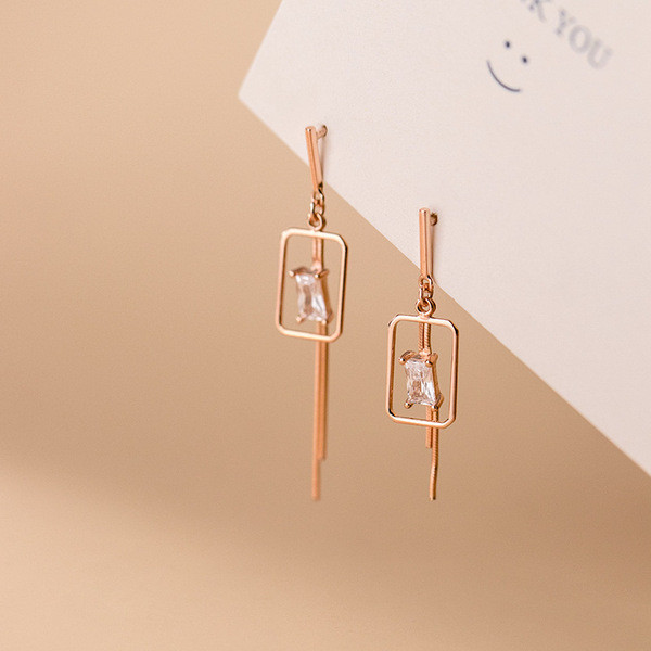 s925 sterling silver asymmetric simple small print earrings